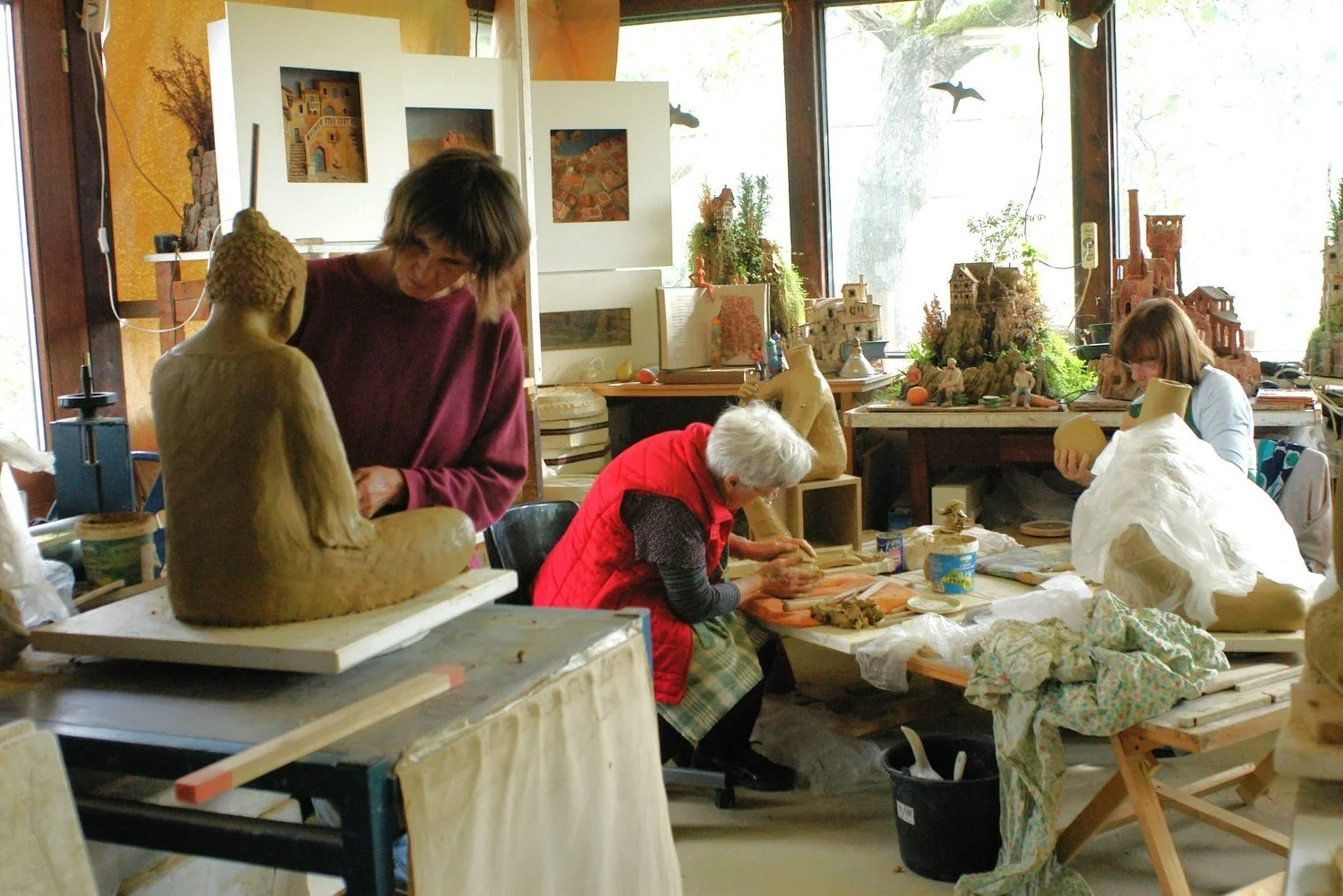 Atelierbesuch in unsere Keramikwerkstatt! Lasst euch überraschen von außergewöhnlichen Kunstobjekten im Innen-und Außenbereich! Zu sehen sind zum Beispiel Miniaturlandschaften mit echten Pflanzen, kleinen Wasserfällen und Miniaturarchitektur oder analog gebaute 3 D-Bilder aus Ton, die einen Blick in virtuelle Welten erlauben. Wer möchte, darf selber an diesem Nachmittag kreativ werden und selbst mit Ton modellieren! Auf Wunsch mit oder ohne Anleitung. Kinder und Erwachsene, alle dürfen mitmachen. Man kann die Tonobjekte ungebrannt oder sechs Wochen später gebrannt gegen Material- und Brandkosten mitnehmen. Außerdem sind kleinere Kunstobjekte käuflich zu erwerben.